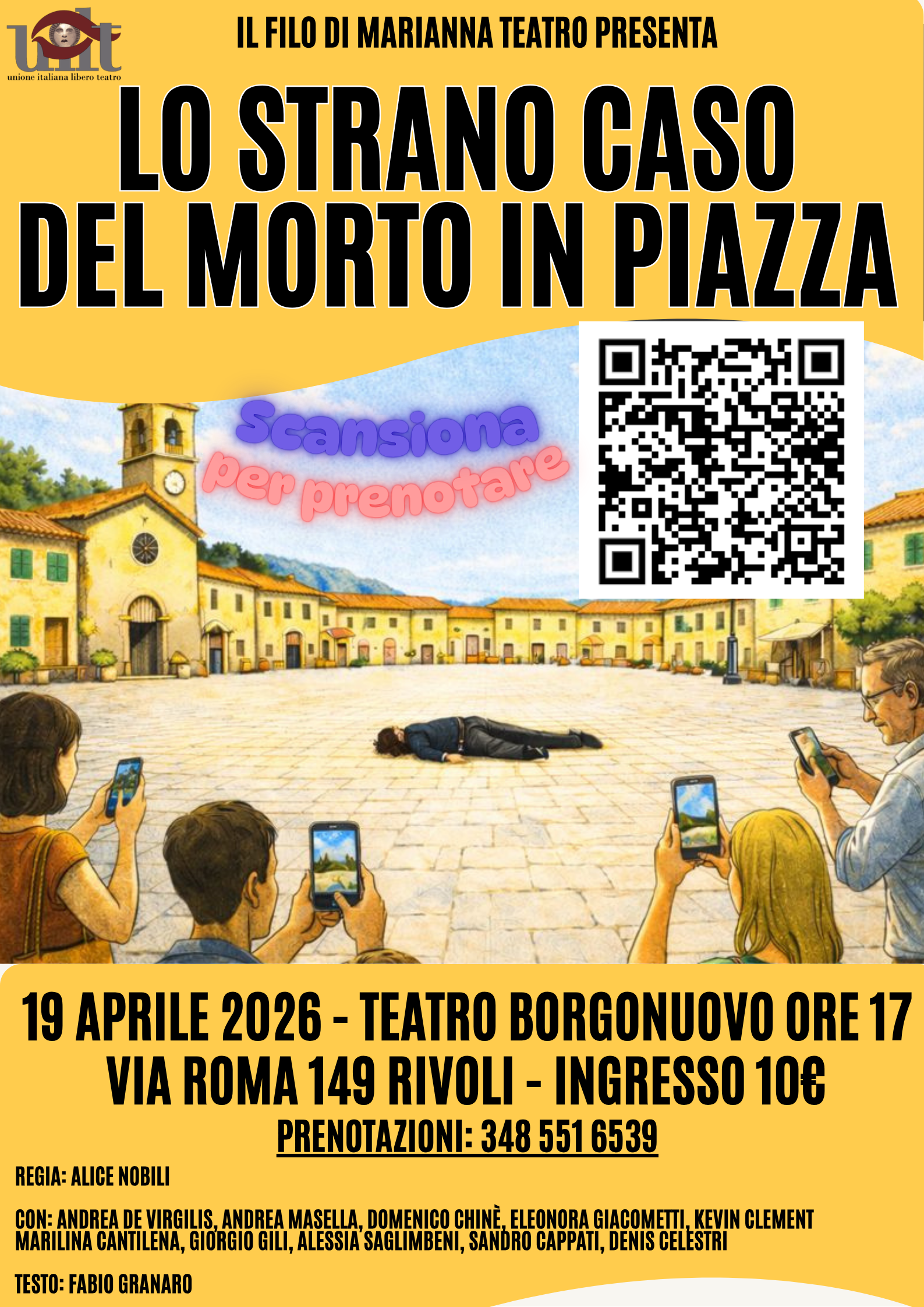 domenica 8 MARZO 2026 BENEVAGIENNA CN) DIABOLICI INGANNI di Stefano PalmucciRegia Guglielmo Pepe PININ PACOT APS Compagnia "ospitante"BANDA BRUSCA LA TRAMA Un discutibile, simpatico, seppur diabolico personaggio, si insinua nella monotona vita di Damiano Darloni...