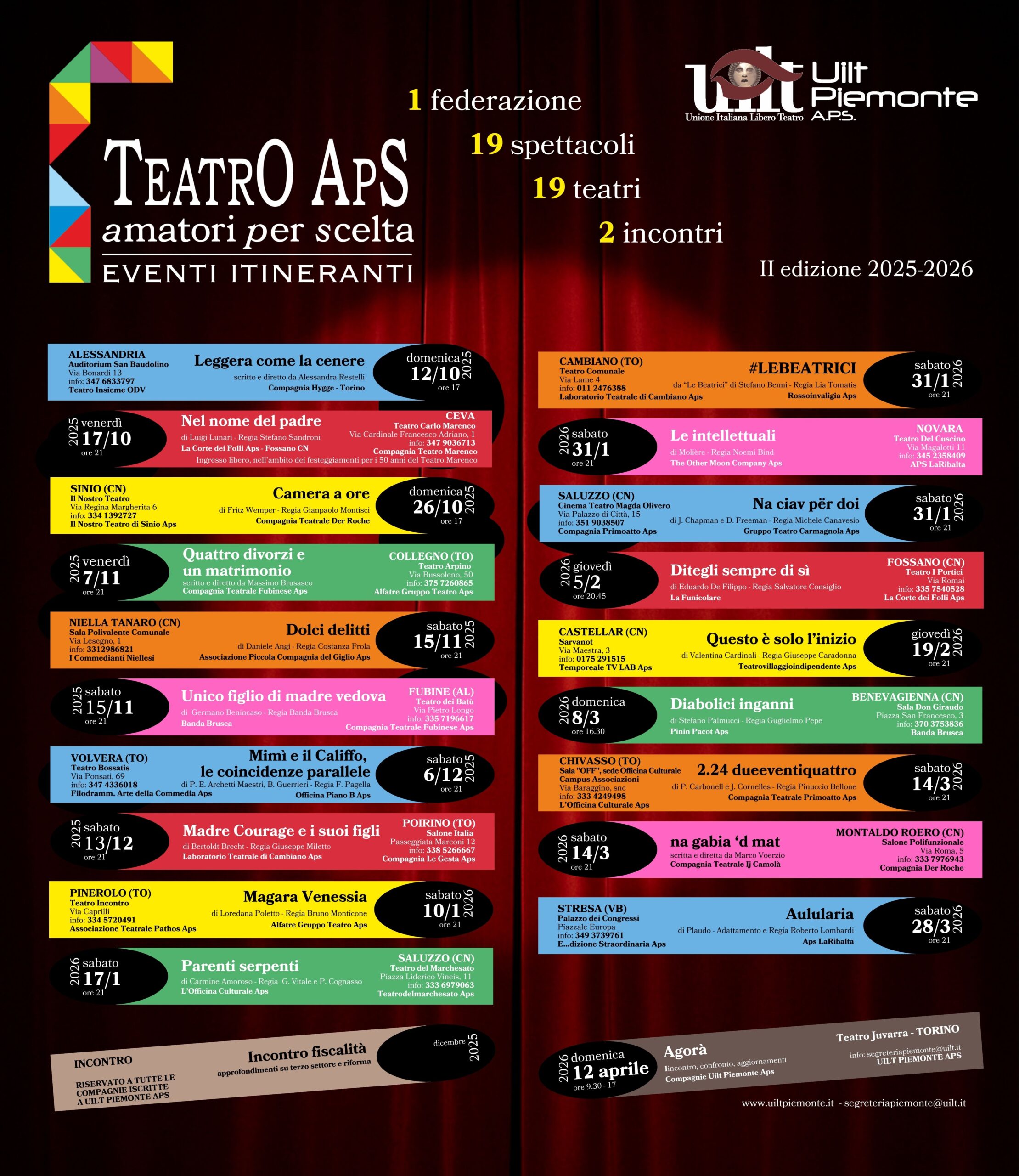 Al via la II edizione 2025-2026 della Rassegna TEATRO APS Amatori Per Scelta – Eventi itineranti, organizzata da UILT Piemonte Aps.