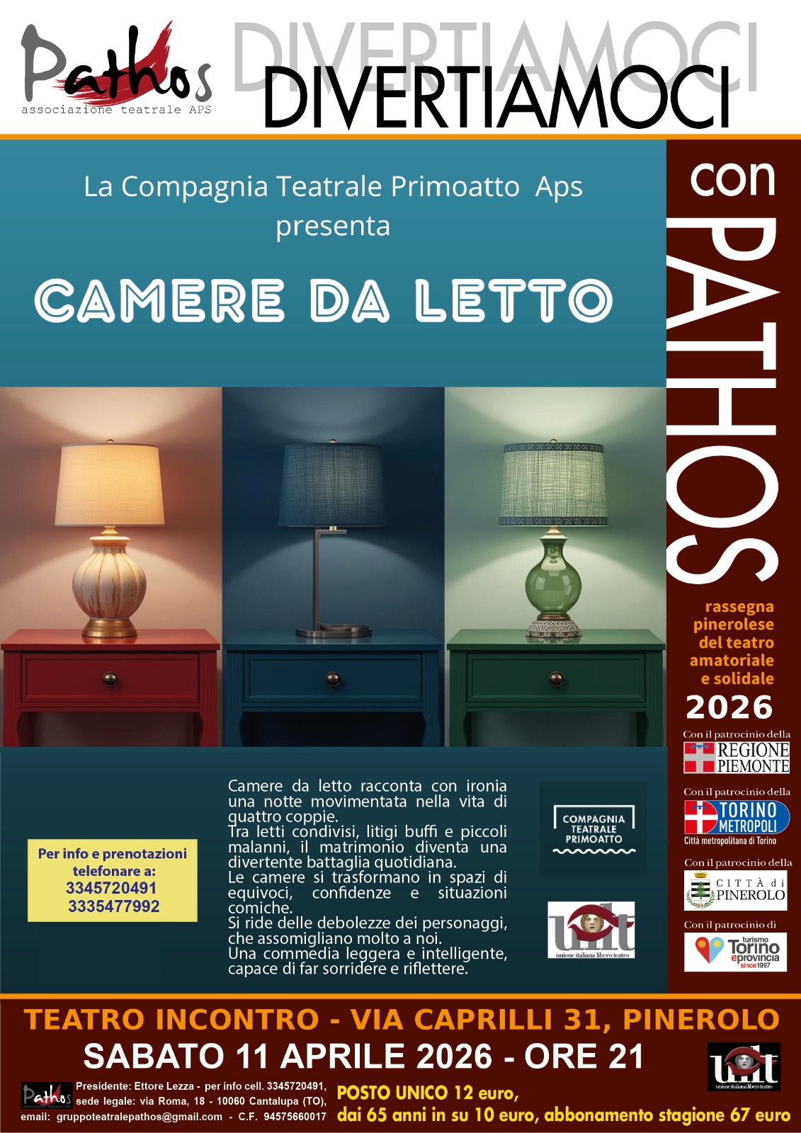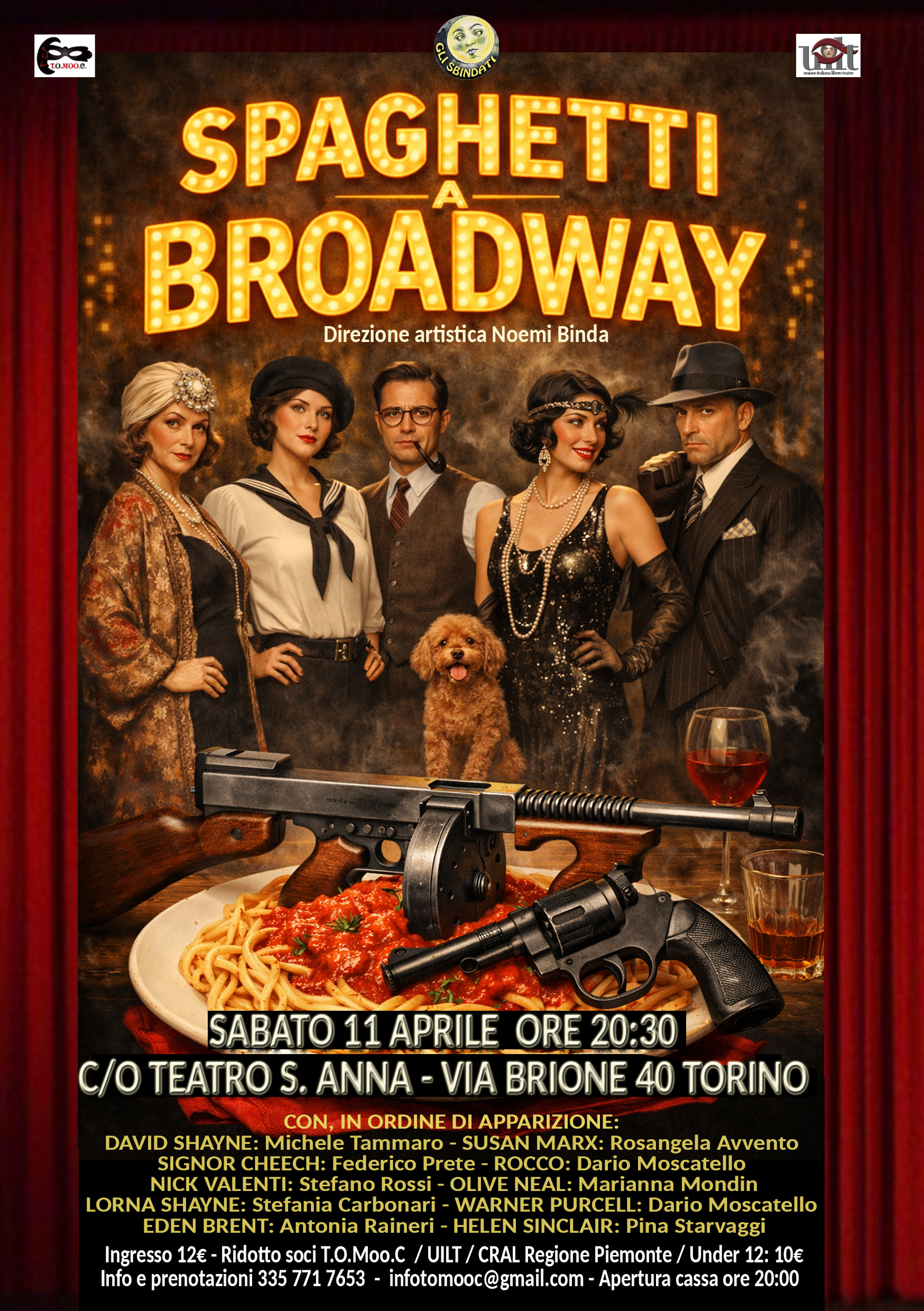 domenica 8 MARZO 2026 BENEVAGIENNA CN) DIABOLICI INGANNI di Stefano PalmucciRegia Guglielmo Pepe PININ PACOT APS Compagnia "ospitante"BANDA BRUSCA LA TRAMA Un discutibile, simpatico, seppur diabolico personaggio, si insinua nella monotona vita di Damiano Darloni...