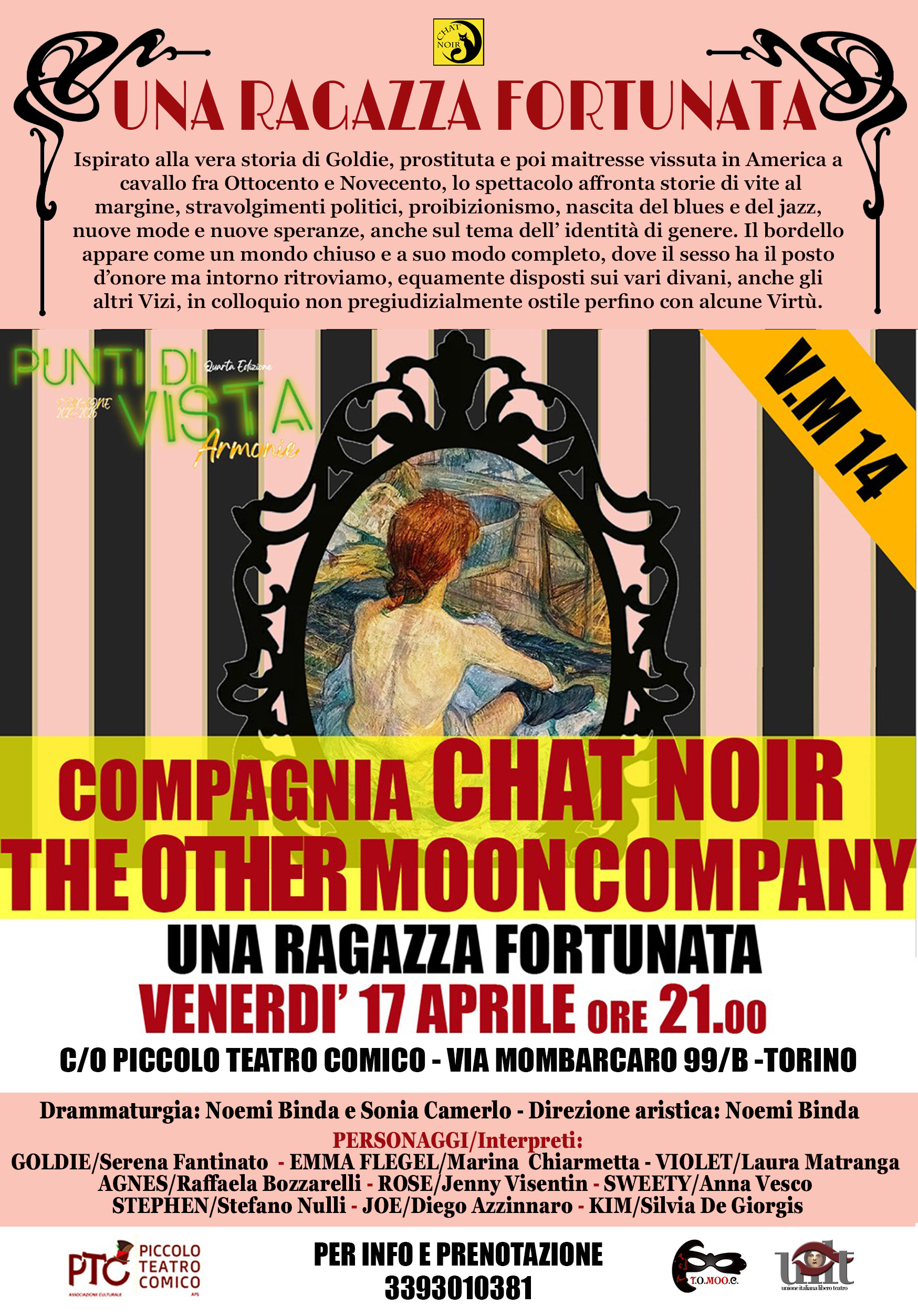 sabato 31 GENNAIO 2026 – SALUZZO CN NA CIAV PËR DOI di J. Chapman e D. Freeman Regia Michele Canavesio GRUPPO TEATRO CARMAGNOLA APS Compagnia "ospitante"COMPAGNIA PRIMOATTO APS LA TRAMA Salotto e camera da letto di Enrichetta che tira avanti da anni grazie alla...