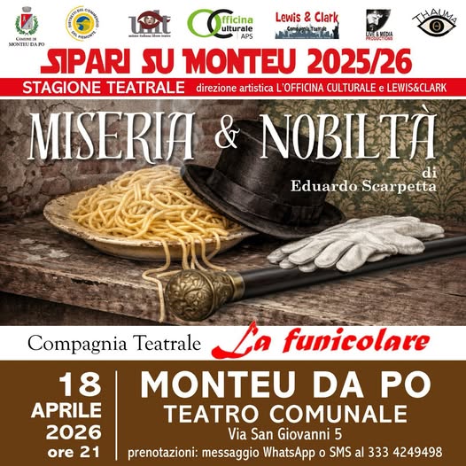 giovedì 5 FEBBRAIO 2026 – FOSSANO CN DITEGLI SEMPRE DI SI' di Eduardo De FilippoRegia Salvatore Consiglio LA FUNICOLARE Compagnia "ospitante"LA CORTE DEI FOLLI APS LA TRAMA In questa commedia, scritta nel 1927, Eduardo tratta, in maniera sottile, ironica e a...