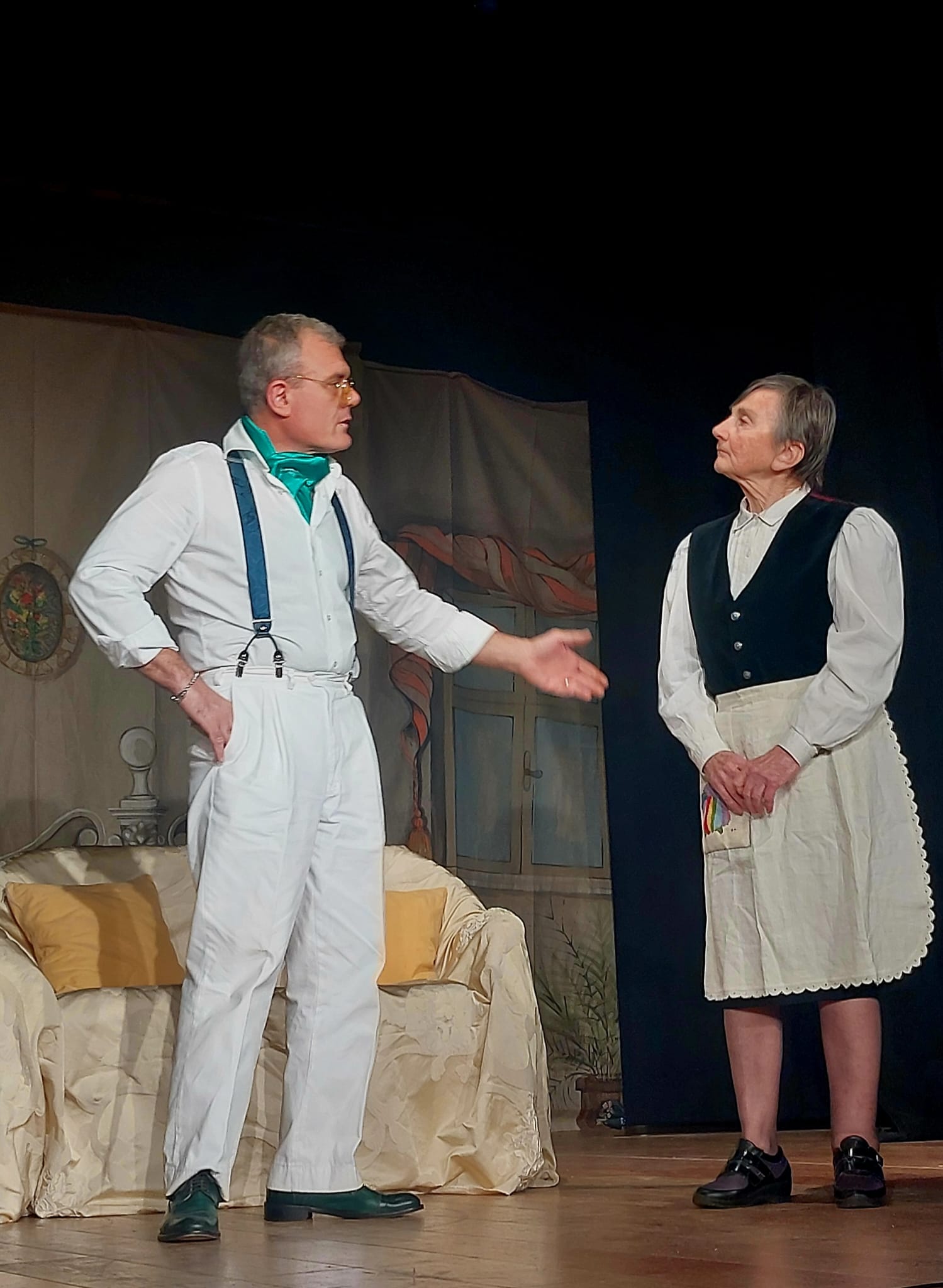 Il sipario si apre su un elegante salotto borghese. In un attimo, la scena si anima: le coppie entrano una dopo l’altra, in un vortice di colori, battute e sorrisi. Da lì in poi, il ritmo non cala mai. Gli attori – 10 interpreti spumeggianti dall’inizio alla fine – regalano al pubblico uno spettacolo leggero, frizzante, capace di catturare l’attenzione di oltre 120 spettatori fino all’ultimo, meritato applauso.