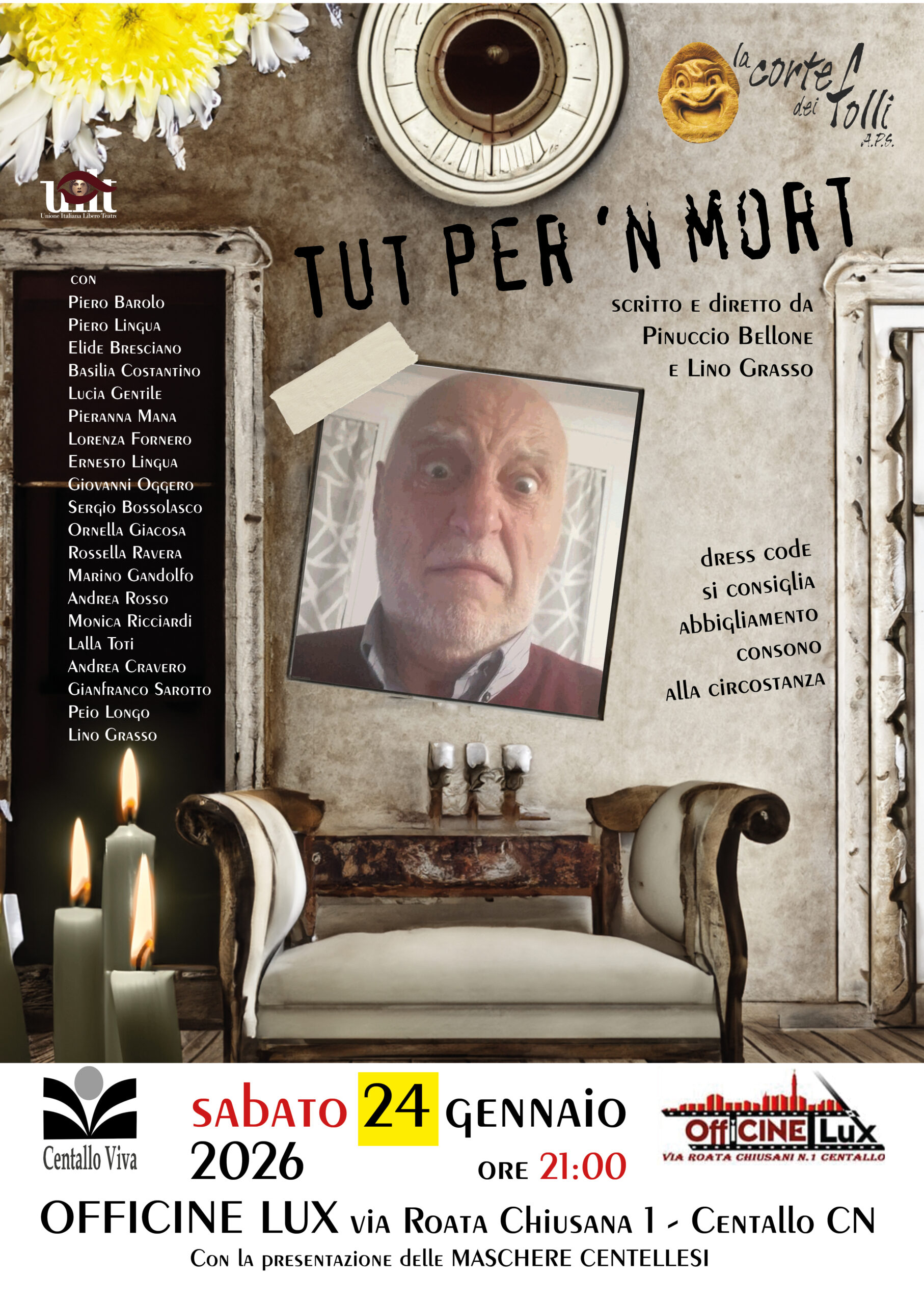 commedia in piemontese scritta e diretta da Pinuccio Bellone e Lino Grasso La famiglia Valenza è colpita da un lutto improvviso e tutto viene messo in discussione dalle ultime volontà del “caro estinto” e dalla sua richiesta di far sapere ” il tutto” ad esequie avvenute. Scompiglio, incredulità, impreparazione all’evento, scaramucce tra parenti, cose mai […]