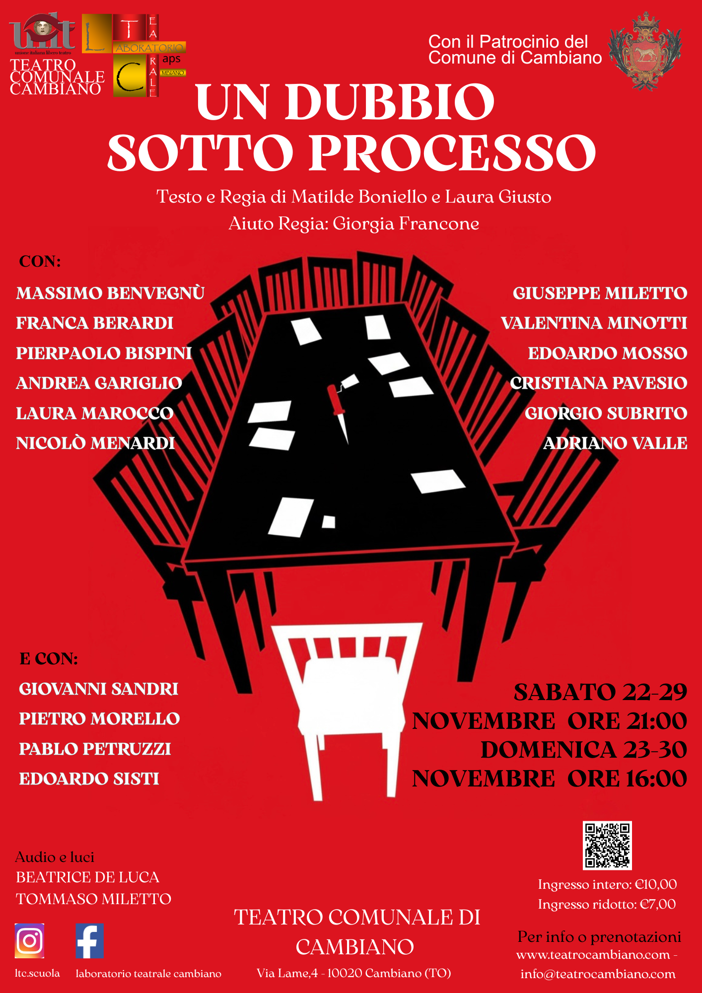 STAGIONE 2025/26 CONVERGENZE ARTISTICHE di Luigi Lunari, regia di Stefano Sandroni La Corte dei Folli A.P.S. Una donna e un uomo si ritrovano in una sorta di limbo, un “non-luogo” e “non-tempo” che i due sono costretti a condividere con l’intento di liberarsi dal proprio drammatico passato per adire finalmente ad una meritata pace eterna. […]