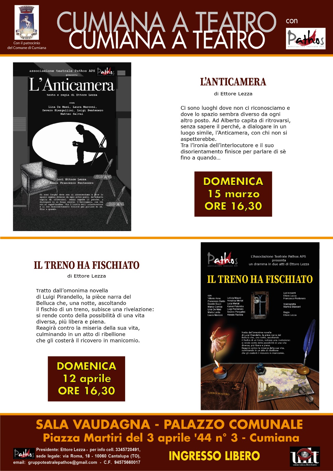 di Ettore Lezza Regia Ettore Lezza e Luigi Pentenero L'Associazione teatrale Pathos propone presso la sala Vaudagna di Cumiana (TO) una mini rassegna composta di 2 spettacoli. L'anticamera è la […]