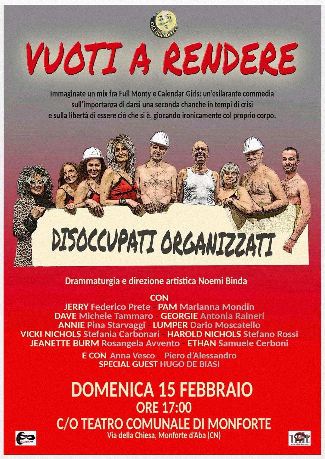 Commedia scritta e diretta da Noemi Binda Un gruppo di operai disoccupati è in cerca di un'idea geniale per salvare la fabbrica...o per lo meno per risollevare la propria esistenza. […]