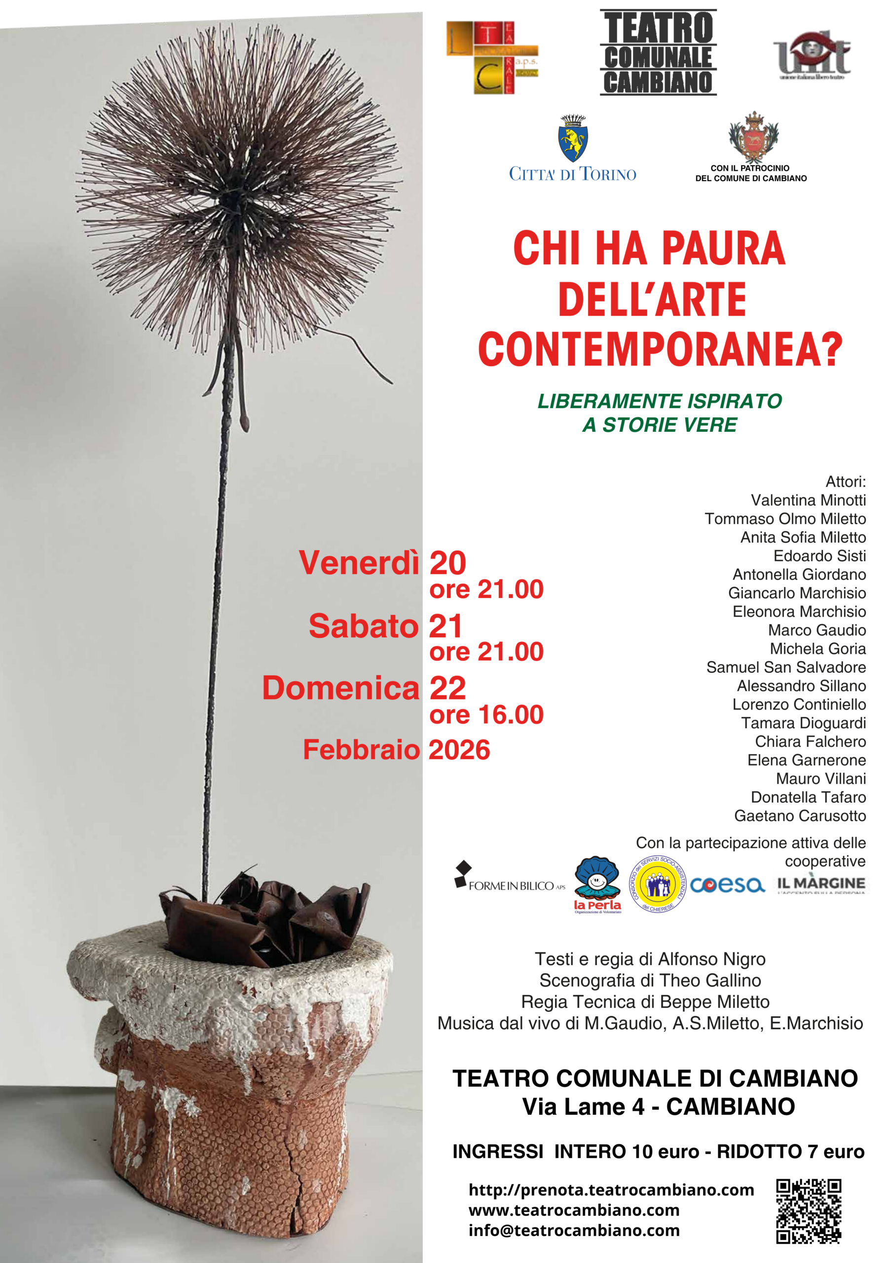 STAGIONE 2025/26 CONVERGENZE ARTISTICHE Testo e regia di Alfonso Nigro Laboratorio Teatrale di Cambiano A.P.S. Non solo due passi senza pregiudizi nell’arte contemporanea, ma soprattutto due occhi puntati su chi […]