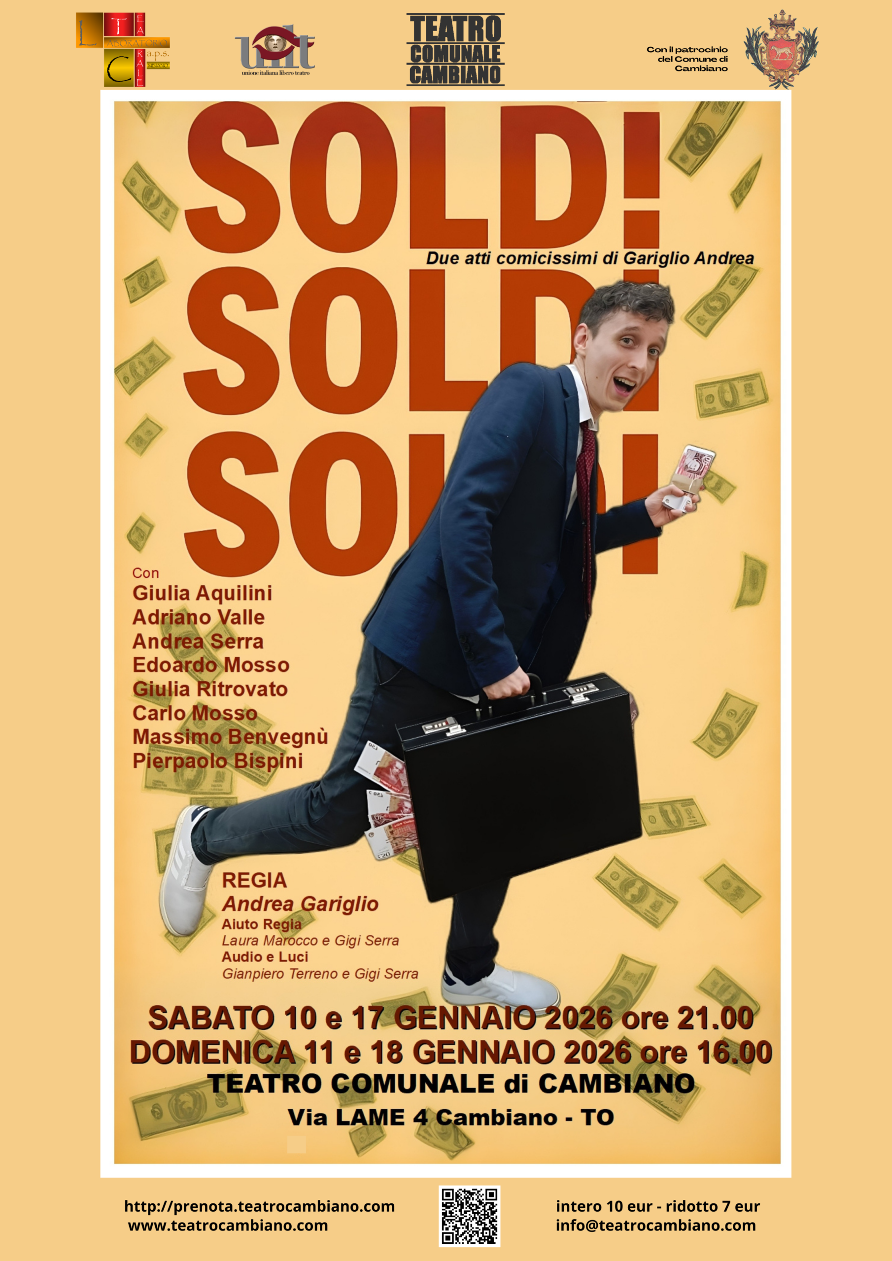 Teatro Comunale - Cambiano Via Lame, 4, CAMBIANO (TO)Convergenze Artistiche – Stagione 2025/2026 Commedia Comica scritta e diretta da Andrea Gariglio Cosa fareste voi se, per sbaglio, la vostra ventiquattrore venisse scambiata con una valigetta uguale ma stracolma […]