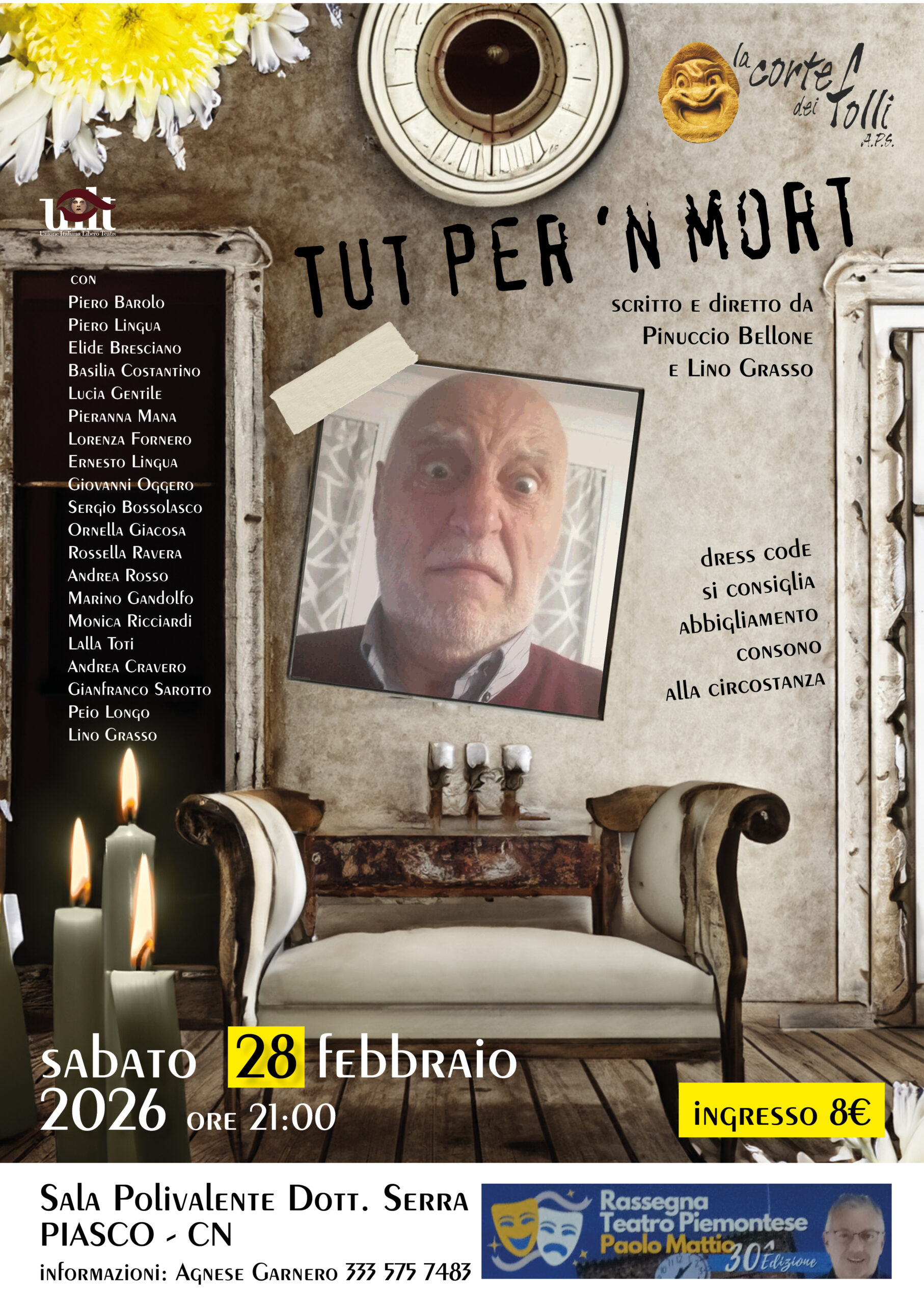 RASSEGNA TEATRO PIEMONTESE "PAOLO MATTIO" 30^ edizione commedia in piemontese scritta e diretta da Pinuccio Bellone e Lino Grasso La famiglia Valenza è colpita da un lutto improvviso e tutto […]